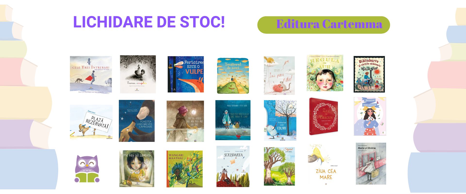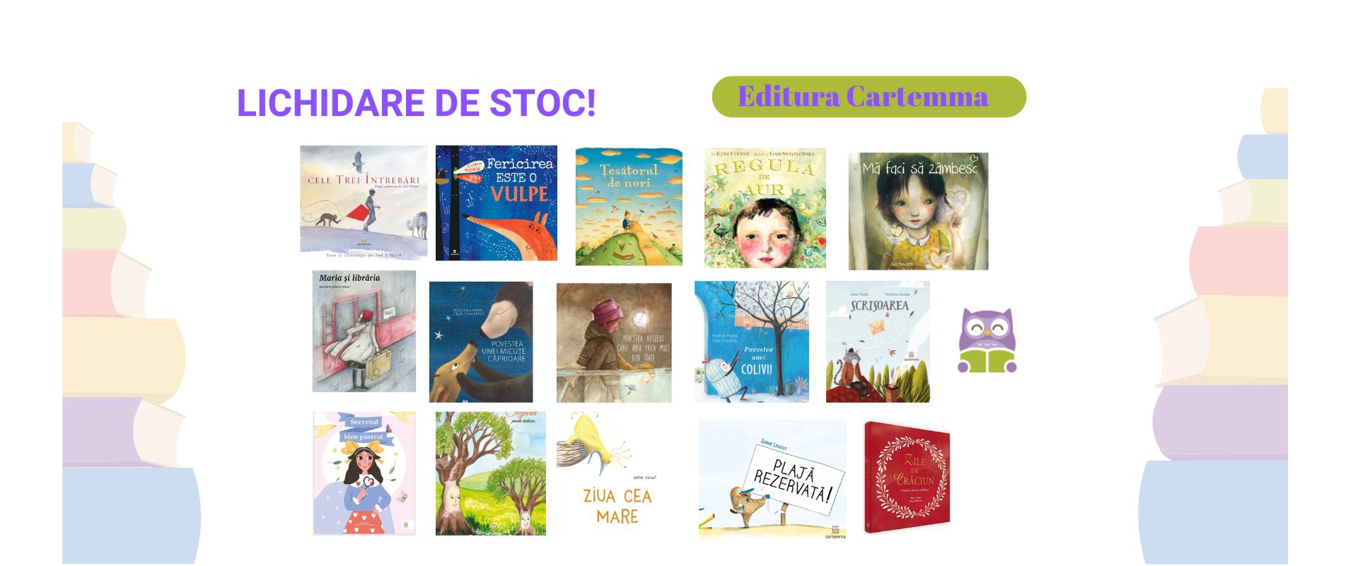 Librăria noastră aduce atât titluri consacrate din literatura internațională, cât și cărți unice, publicate de propria editură. Nu aștepta sărbatorile sau zilele de naștere pentru a cumpăra sau a dărui cărți celor mici - orice moment este perfect pentru educație, lectură sau povești, pentru joacă sau activități distractive!