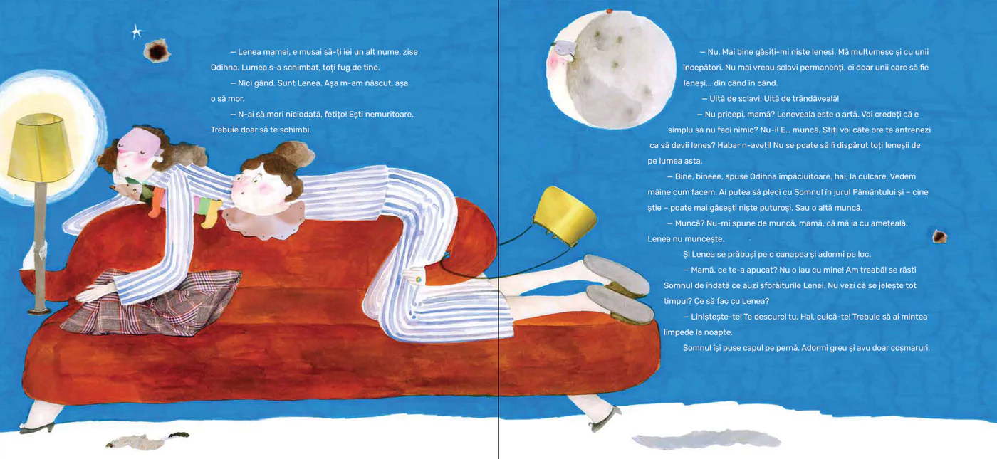 Lenea, fiica Odihnei și sora Somnului, e tare oropsită. Oamenii au bârfit-o mereu și nu au înțeles că are și ea un rost pe lume, dar de data asta au întrecut măsura! Nu mai știu să lenevească. Muncesc toți ca apucații, nu se știe de ce! Fratele Somn se îndură de ea și o ajută, o lasă să-i ia în stăpânire pe Bâzdâc, pisica, și pe cei trei pisoiași ai ei. Dar Lenea e lacomă și o atacă până și pe bunica Maia… Nepoții ei, Alex și Ana, trebuie să o alunge, Lenea nu poate rămâne la ei acasă! Dar unde să o trimită? Care e rostul ei pe lume?!